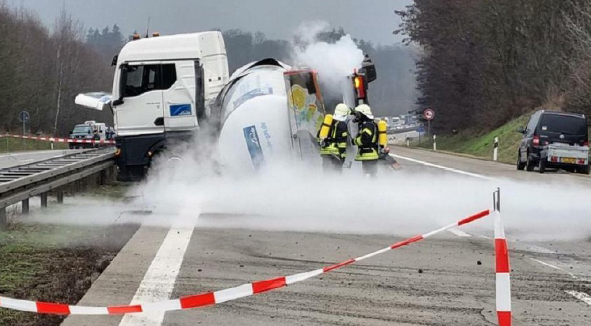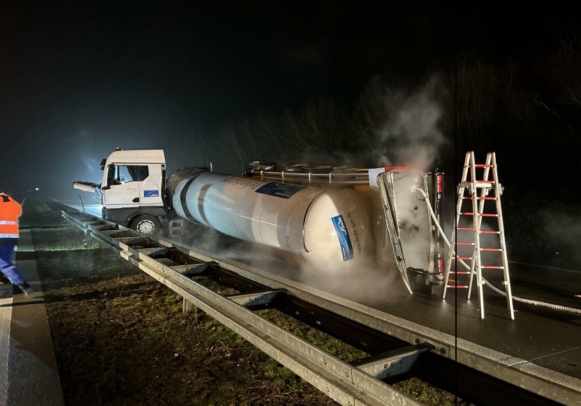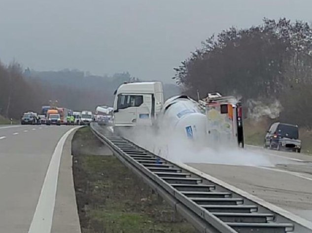 LKW-Unfall A38 Leinefelde inkl. Errichtung von Ölsperren im Regenrückhaltebecken