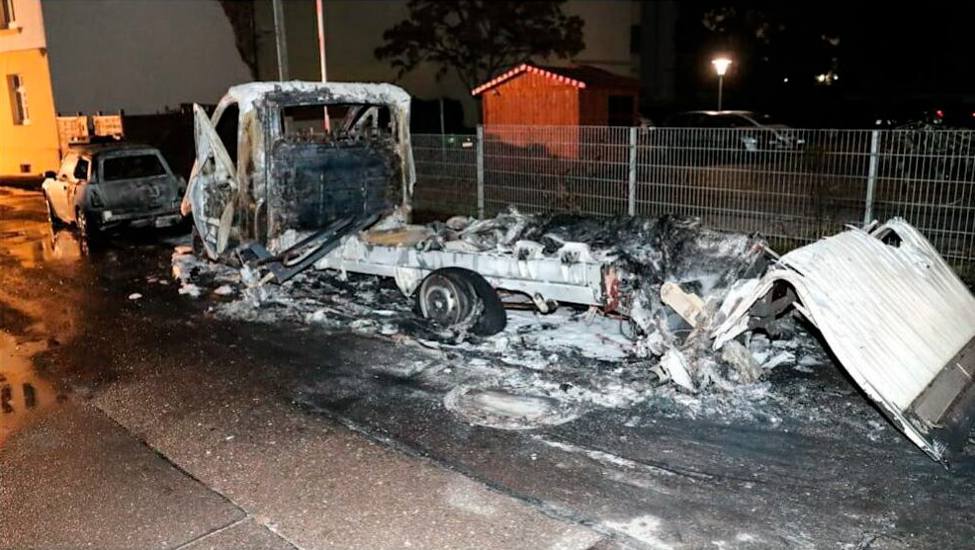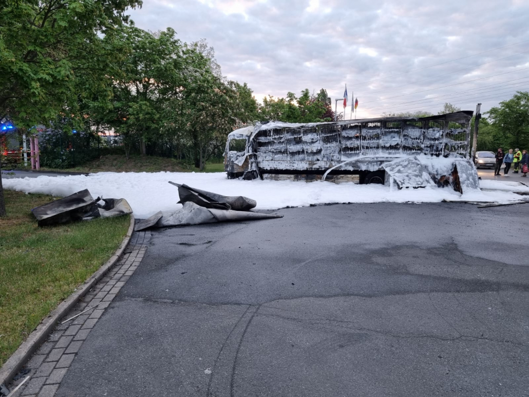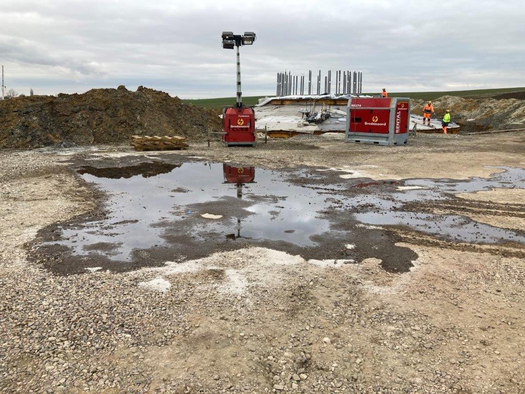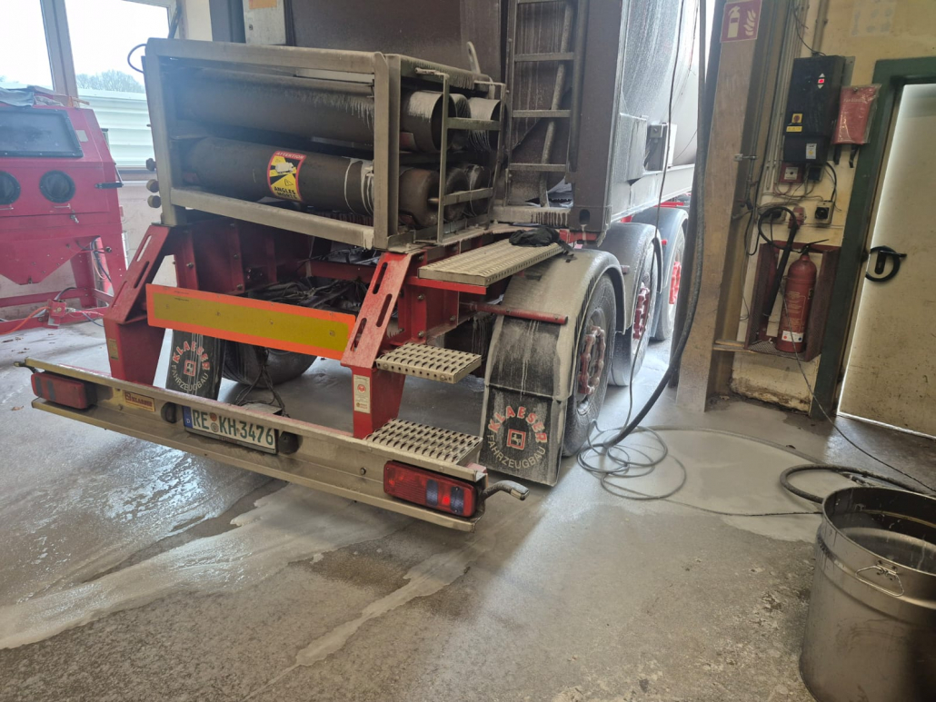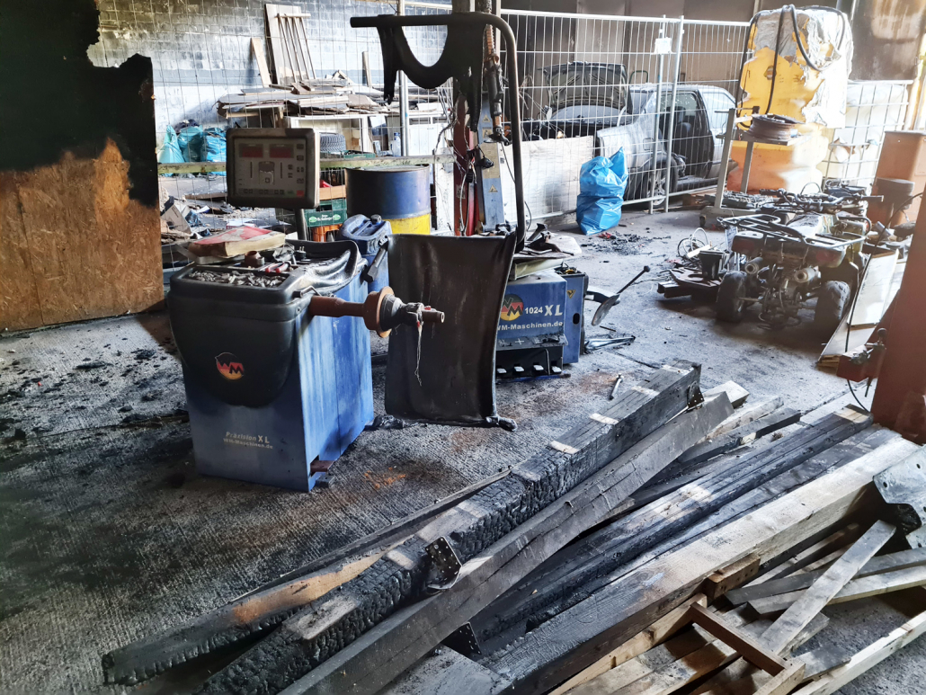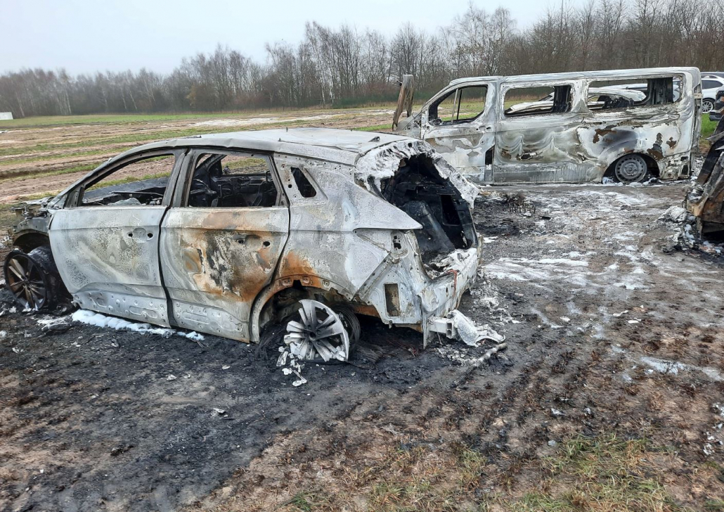 Brand-Schaden Elektrofahrzeug auf Teststrecke, Fahrbahn Sanierung und Löschwasserentsorgung